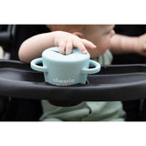The Happy Snacker is a spill-proof, two-piece silicone snack cup with a snap-tight lid and soft opening for easy access. Designed with easy-grip handles, it fits in car seats and strollers—making it a perfect toddler companion for mess-free snacking on the go.