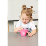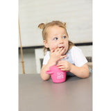 The Happy Snacker is a spill-proof, two-piece silicone snack cup with a snap-tight lid and soft opening for easy access. Designed with easy-grip handles, it fits in car seats and strollers—making it a perfect toddler companion for mess-free snacking on the go.