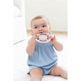 The Happy Teether soothes sore gums, provides sensory stimulation, and is easy to grip from any angle. Made of silicone beads for the perfect resistance, it offers relief for baby—and peace for parents. With fun colors and sayings, it’s a teething essential with a playful twist.