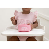 Funny sayings, serious suction! This silicone divided bowl sticks to the table and features a curved lip to support self-feeding. Perfectly sized and portioned, it grows with your child—from first purees to late-night sundaes—reducing frustration with its thick, easy-to-use rim.