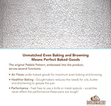 This durable Doughmakers pan is made from 18-gauge aluminum with a textured pebble surface for even baking and easy release—no oils or sprays needed. Rust-resistant and long-lasting, it outperforms standard bakeware, maintaining its natural non-stick properties through frequent use.