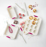 Our Structure Silicone™ Confetti 24-count Mini Muffin pans are so pretty that they will whet your appetite even before you start cooking! Easy to use, all you need to do is prep it, bake it and pop it out! Features reinforced steel rims for secure handling. Discover perfection, right out of the oven!