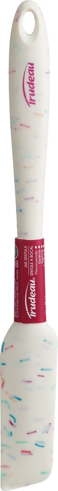 The Trudeau Confetti Silicone Jar Spatula is the perfect tool to mix, scoop, spread and the shape helps scraping jars. Heat, stain and odor-resistant, This essential baking utensil features one-piece construction for easy cleaning and maximum hygiene. Comforatable, flexible and sturdy for easy manipulation.