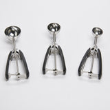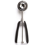 The large, stainless steel cookie scoop features a spring-loaded design and soft grips for effortless release without sticking. This size 20 portioner yields 3.5-inch cookies with each squeeze, making it perfect for uniform, easy-to-release cookie dough portions.