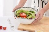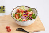 Made of high fired porcelain, with a titanium beaded rim, this attractive bowl will ealily show off any salad. Use for hot food as well - it's oven safe to 350 degrees!