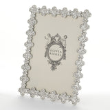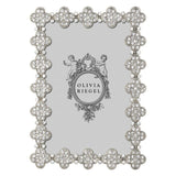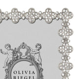 Inspired by the classic quatrefoil motif, this silver-finished pewter frame is adorned with pavé hand-set clear European crystals. It features a grey moiré silk back with an easel for vertical or horizontal display and comes in Olivia Riegel’s signature luxury gift box.