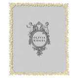 Stunning clusters of clear European crystals hand set in gold finished cast pewter. Elegant gray moire silk back with easel for vertical or horizontal placement, adds a touch of perfection.