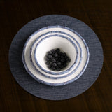 The VIDA Bamboo Cereal Bowl Set of 4 in white with a blue bamboo-inspired rim brings versatile charm to any table. Made of luxury melamine with a ceramic look and feel, these bowls are perfect for cereal, snacks, or dips indoors or out.