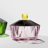 This opulent coloured lidded jar is crafted from crystal and is rendered with an octagonal lid. It will bring any space alive with its bold colour combination. Ideally placed on a dressing table, desk or tabletop, this dish can be used to store jewellery, keys or other small trinkets.
