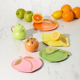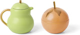 Sweeten your table with this playful set, featuring a pear-shaped creamer and an orange-shaped sugar bowl with lid. Crafted from porcelain, these fruit-inspired pieces bring charm and style to your everyday cream and sugar service.