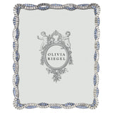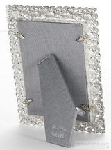 Silver finished cast pewter twist pattern with hand-set clear and light sapphire baguette EuropSilver finished ean crystals.Elegant gray moire silk back with easel for vertical or horizontal placement, adds a touch of perfection..