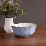 The ENCANTO Lausanne Medium Bowl, named for the Swiss city, features fluted sides, an elegant shape, and a gold-rimmed two-tone finish. Perfect for snacks and sides, it combines classic design with vibrant colors, bringing sophistication and style to any table setting.