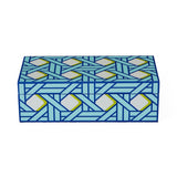 This box showcases a classic basket weave pattern in cool blues with a lime green accent. Hand-polished to a high-gloss and velvet-lined, it’s a chic, preppy addition to your shelf or table—perfect for stylishly storing your essentials out of sight.