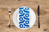 Bright blue circles featuring white dreidels sit between broad, curved blue lines on a crisp white background, creating a bold festive design. Crafted from premium airlaid tissue with a linen-like feel and excellent absorbency, these buffet napkins bring cheerful style to your Chanukah table.