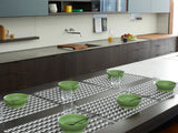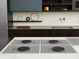 Harp boldly explores black and white with rich texture and striking horizontal and vertical patterns. Featuring larger 'floats,' it showcases the Chilewich team’s innovative weaving techniques, where weft yarns create patterns by crossing clusters of warp threads in precise sequences.