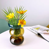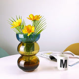 The Cloudnola Flippable Bubble Vase combines modern design with traditional craftsmanship. Mouth-blown and reversible, it features deep ocean blue on one side and sunny yellow on the other. This versatile, tactile vase is both a functional vessel and a striking decorative piece.