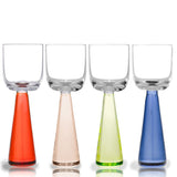 The Pyramid shot glass features vibrant, multicolored bases and a striking pyramid-shaped stem. Combining unique design with durability, it’s perfect for liquor or champagne and adds a pop of color to your barware collection, inviting a toast with every pour.