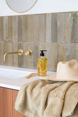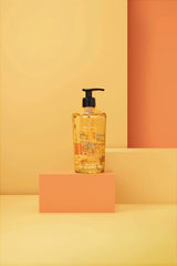 This decorative hand wash showcases a screen-printed gold and colorful design inspired by Saint Tropez. Its transparent design reveals a sunny yellow hand gel with a gourmet appearance. The moisturizing formula leaves a fragrant, soothing sensation on your hands.
