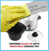 This compact slow cooker features a ceramic insert for even cooking, cool-touch handles for safety, and a tempered glass lid for easy monitoring. Its small size is perfect for smaller families and offers convenient, hassle-free, and energy-efficient slow cooking with delicious results.