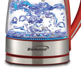 The Brentwood Cordless Glass Electric Kettle swiftly boils water with a single button press, surpassing microwave speed and stove top safety. Its elegant design features a vibrant blue LED, a 360 swivel base for effortless pouring, and advanced safety measures like boil dry and overheat protection. Enjoy pure, impurity free water!