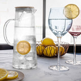 This Stripe Iris Tea/Water Jug pairs clear glass with a crisp striped design, making it a striking table centerpiece. A comfortable handle and stable base ensure easy pouring, while the stainless steel lid offers double-flow options for water or filtered teas. Ideal for everyday use or entertaining.