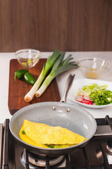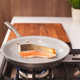 The Trudeau Pure Frying Pan is made with a high-performance non-stick ceramic coating that is free of PFOA and PTFE chemicals for healthy cooking. The non-stick layer is also cadmium and lead-free and requires less cooking oils for a healthier meal. Reaches the desired heat rapidly while preventing warping and buckling.