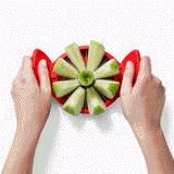 Flapple, the space-saving apple slicer and corer, features foldable raised handles for compact storage. Its auto-aligning base ensures precise cuts without a cutting board. The wide double-reinforced Japanese stainless steel blade effortlessly divides apples into 8 equal pieces, while a secure locking mechanism ensures safe storage.