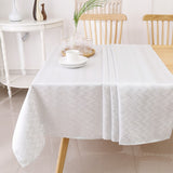 Enjoy this trendy zig zag tablecloth in soft silvery shades. Easy care and forgiving, this tablecloth will become a mainstay of your table linens repertoire.