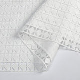 This tablecloth features an intricate diamond pattern crafted from lace, imparting an elegant touch to your dining room. This delicate lace design is backed by an attached liner. No need for two separate cloths!