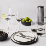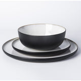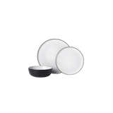 The Quartz dinnerware set, crafted from high-quality porcelain, features a textured design with contrasting tones and a warm beige rim. Offering an artisanal, restaurant-style look, it’s both stylish and durable—perfect for everyday meals or casual entertaining.