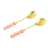This stylish gold salad set features pink resin knob handles, adding a modern and elegant touch to your table. Perfect for serving with flair, these servers blend sophistication and functionality, making them a chic addition to any dining experience.
