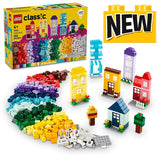 Construct six vibrant houses with diverse designs, heights, and shapes. Extend the creative excitement by stacking bricks to increase height and swapping doors, windows, roofs, gardens, and more for unique designs. Explore eight included ideas for additional inspiration or combine numerous bricks to craft an oversized,extraordinary house!