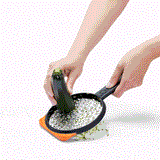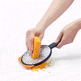 The Dreamfarm Ograte Moves in the Right Circles! Bottom side blades grate in a circular motion for speed grating foods like carrot and zucchini, and includes a guide rim for easy grating in either direction.